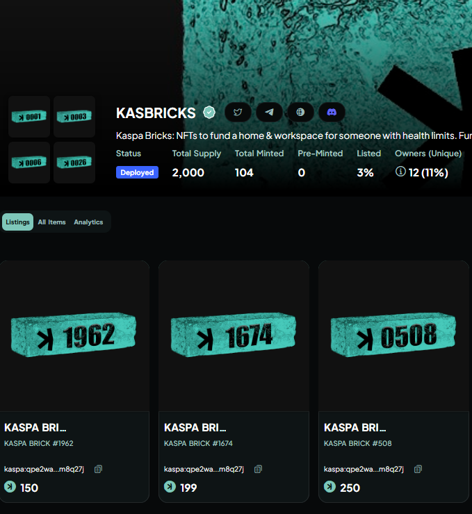 I have concluded, that KASBRICKS is not a scam. The creator, Silenthillpsx is extremely active in many Kaspa NFT Telegram groups. By visiting his kaspa.com listing, you can check out his Telegram, X handle and Whitepaper. All of it is honest and open about his intentions.